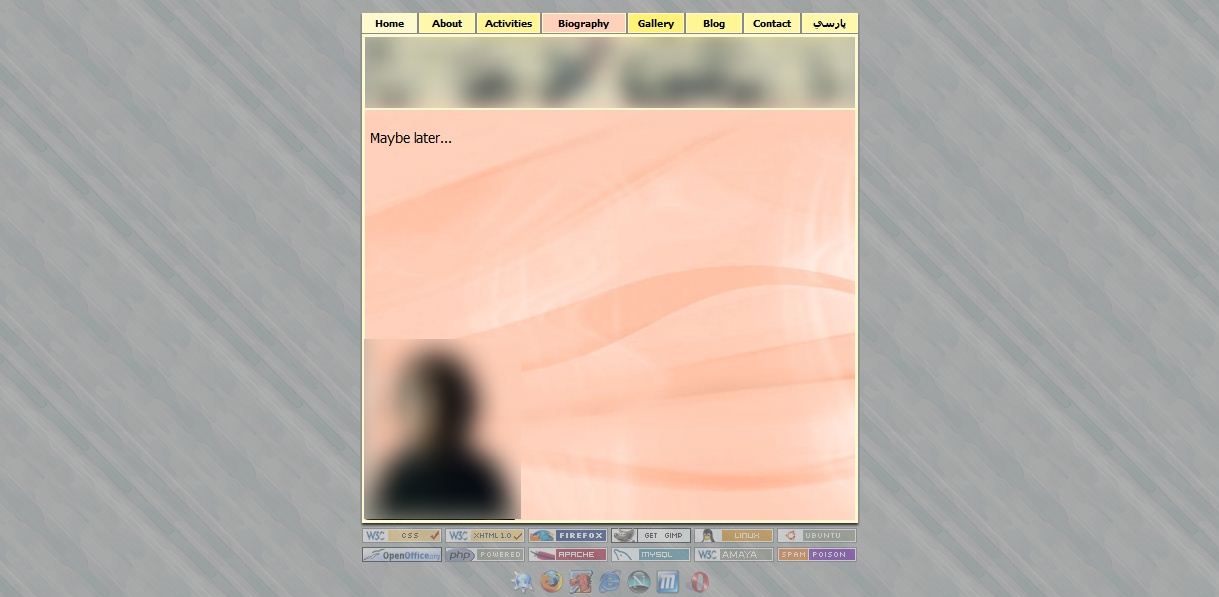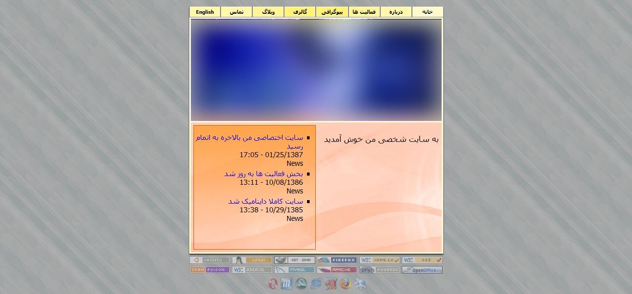 سایت شخصی دو زبانه و پویا دارای بخش های درباره ، بیوگرافی ، تماس ، گالری عکس ، فعالیت ها با پنل مدیریت پیشرفته